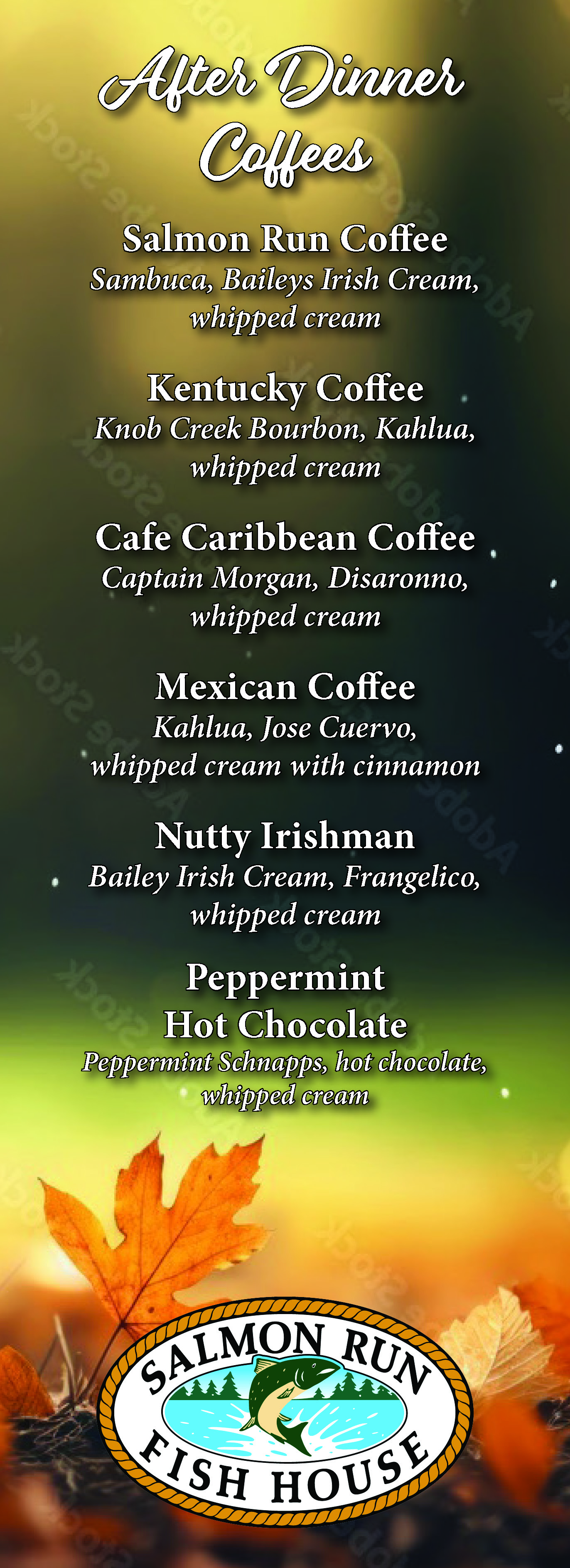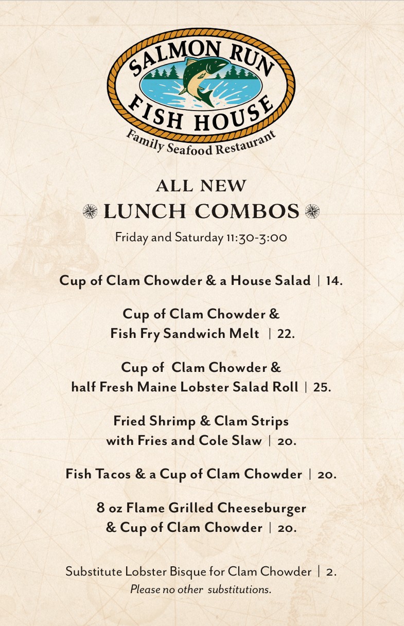 We would like to take this opportunity to thank all of our customers for the continuing support of the Salmon Run Fish House. We go to great lengths to provide you with prompt, courteous, friendly service; and fresh wholesome seafood at moderate prices in a comfortable atmosphere. This was our commitment to you when we first opened in November of 1999, and today my wife and I still continue to stand by our commitment, as you have come to expect nothing less.