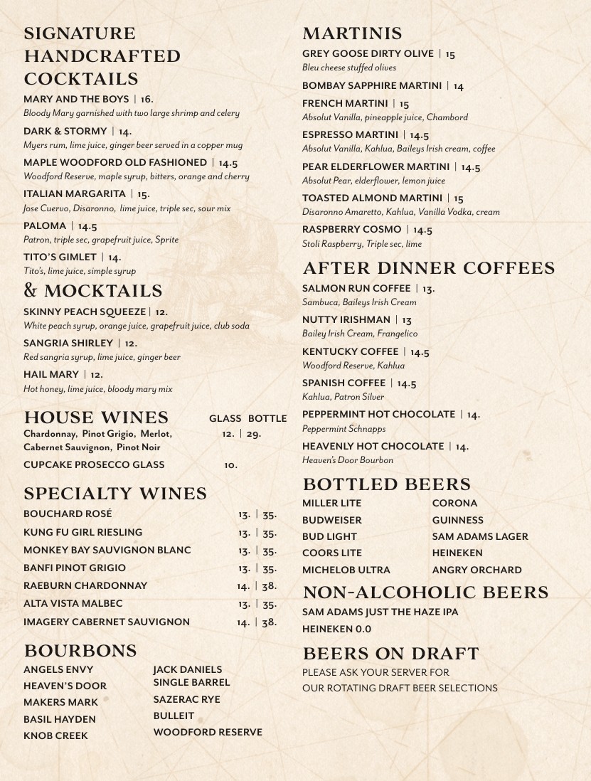 As our guest at Salmon Run you may choose to dine in either of our two dining rooms or sit at our high top bar and enjoy an appetizer, cocktail, beverage or even a complete dinner.